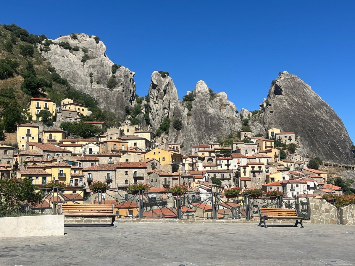 Castelmezzano è un set fotografico naturale. Le case si stringono alla montagna come a chiedere protezione e da Piazza Emilio Caizzo regalano il colpo d’occhio più instagrammabile della Basilicata. Selfie obbligatorio: niente filtri, qui è tutto già pronto per fare invidia al vostro feed.