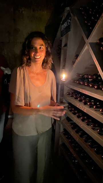 La figlia, Alessandra, come un novello Virgilio, ci conduce giù in bottaia, nel ventre dell’azienda, dove sono gelosamente custoditi i preziosi reperti della storia del vino nel “Museo del Simposio”. Ad un certo punto è come se ci ritrovassimo nella stiva di una nave di pirati: alcuni vini sono stati fatti invecchiare in fondo al mare, che ha dato loro sfumature di colore, aroma e sapore unici, oltre ad un aspetto originalissimo delle bottiglie, quasi corrose dal sale, che ricordano le magia delle onde e di chissà quali segreti nascosti e chiusi con i tappi di sughero.